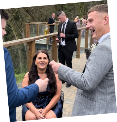 As well as hiring Campbell as your entertainer you also have the option to hire him as your wedding host. In this role he will be announcing the most important parts of your day such as the first dance, cake cutting, etc. This option is exclusive to Campbell's full day packages which are perfect if you are recieving additional evening guests. Your evening guests can often feel like an afterthought and like they have missed a lot of the fun of your wedding. However by having Campbell there all day you add consistency and create a direct link between your day guests and your evening guests! You will also get a few extra perks in addition!